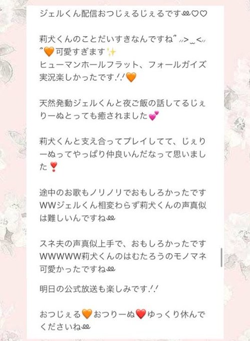 遅れましたがじぇりーぬ放送お疲れ様でした〜!!