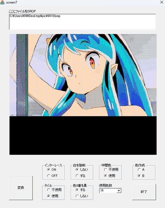 MSX (MSX2) SCREEN7 (16色モード) の画像変換ツール