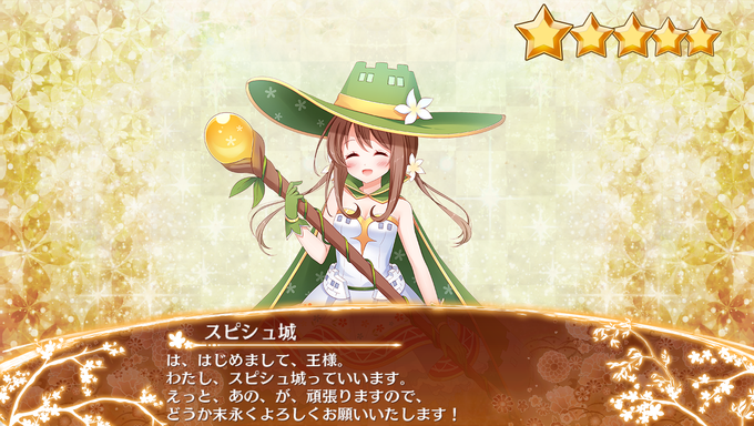 コン!スロバキアの城娘スピシュ城ちゃんなの!実は今は廃墟となっているなのだけど……それでもその美しさから世界の名城25選にも選ばれているなの♪城娘姿では白のドレスに緑のマントや帽子!白亜の御城である彼女とその周りの一面緑の草原からなの~ #城プロ