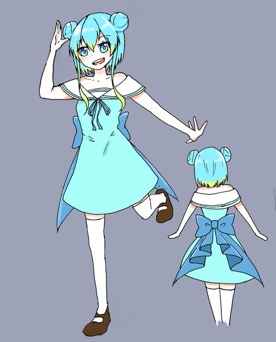 デザインできた!魚人の設定なので海っぽくセーラー襟つけて…魚のヒレっぽいヒラヒラもつけた…!!