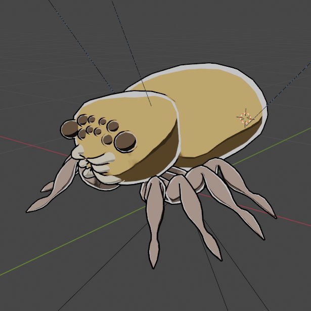 前のハエトリグモくんリギングしてない、キャラのリギングの予行練習、…と思って始めたら時間かかりすぎ。