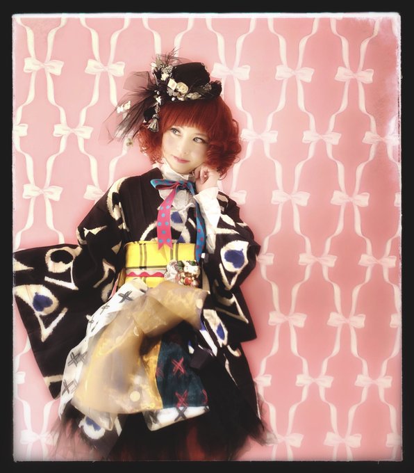 阪急さんのアリス展に出展されるピコさんのお着物とヘアスタイリングさせて頂きました。トランプ柄を彷彿させる銘仙のお着物のワンピース着付。ヘッドドレスはデビィさんの作品を合わせました。ピコさん可愛い❤︎