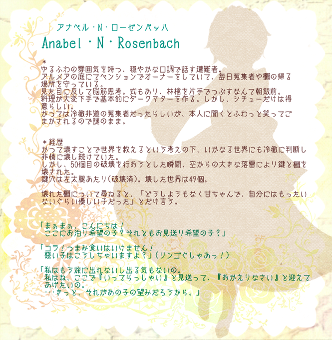 今度は櫃のネージュです。理解不足で不備があった場合はきちんと設定練り直します。(こっそり教えてください)