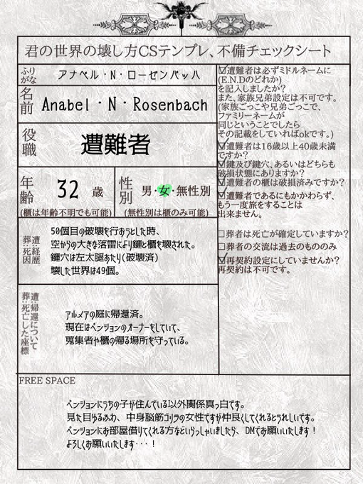 こちらの企画【@Another_end01】に参加させていただきます。うちうちで組んでいる蒐集者です。 企画に不慣れなのでご迷惑をおかけするかと思いますがよろしくお願いいたします。