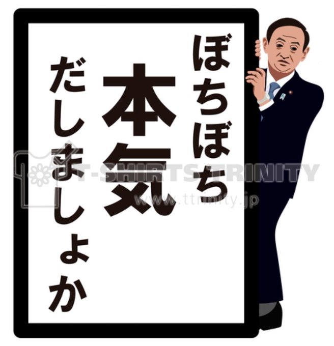 私の出番ですか と ぼちぼに本気だしましょか 販売開始しましたhttps://t.co/wnjCzsBOml 令和発表の時につくった物の文字だけ変えただけですが 令和の時も一枚も売れてないので、今回もだめと思いますが一応宜しくお願いします #Tシャツトリニティ #菅官房長官 #総裁選 #次期総裁