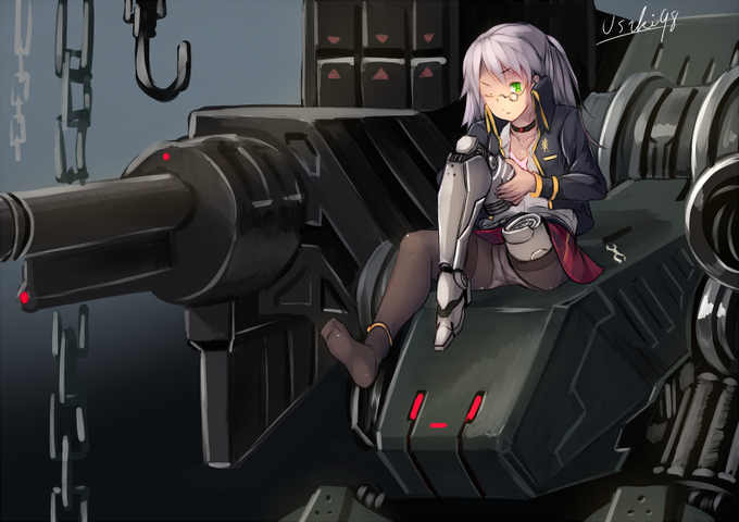 義足・モノクル・黒チョーカー・絶対領域・パンスト越しのパンツ・足の裏・男の娘・軍服・巨大兵器