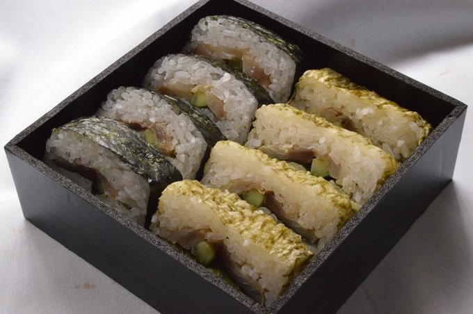 【ご案内】ひさご寿しの“二色磯巻”のご案内。鯖が美味しくなる季節、定番商品の“磯巻”[鯖と胡瓜]に紫蘇の葉を加え、4缶は焼海苔で4缶はおぼろ昆布で巻きました。アレンジで新鮮味のある期間限定の“二色磯巻”一度お試しくださいませ。1折1,280円(本体価格) #京都 #ひさご寿し河原町本店 #中京エール飯