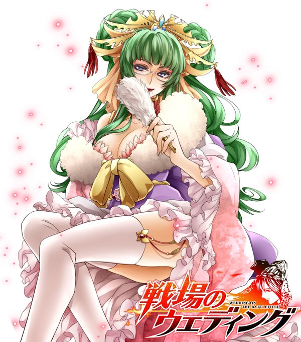 キャラクター紹介です! 今回は開催中の晴れ着イベントより、開運★軍師カチューシャ!(CV:羽月理恵) 太陽帝の知恵袋ですね。かわいい顔して悪い顔していますよ。 #戦場のウエディング