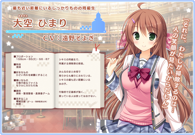 天トロヒロイン紹介1「大空ひまり」CV:遠野そよぎ様。主人公の同級生で掃除好き。世話好きでみんなのまとめ役。 #天トロ http://t.co/02xFAWkBtr http://t.co/bpPFdUOppR