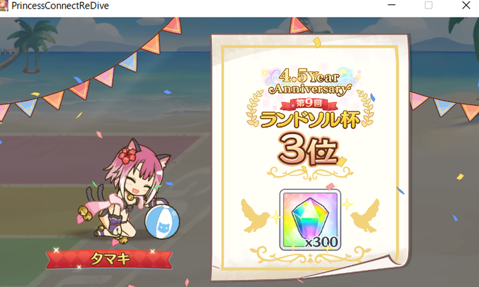 ランドソル杯8日目は水着スズメで1位でした!