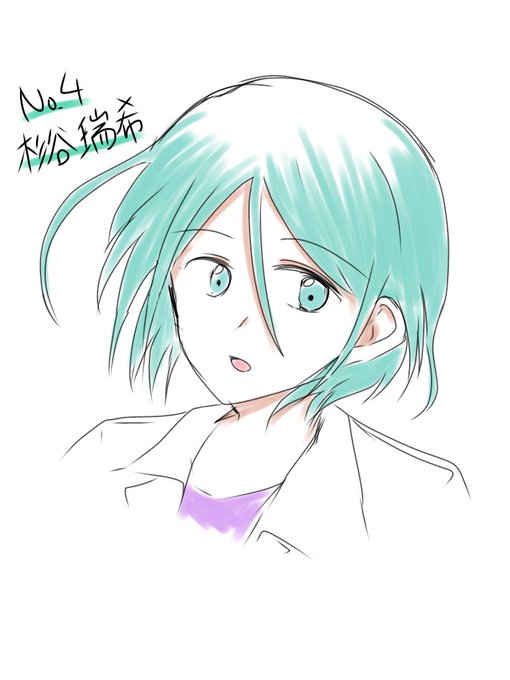 くろかわ、みみこ、スズキ、私で「髪の長さ肩より下、水生生物モチーフ、髪色2色以上」で誰デザしました!私の4人で誰デザしました!私は1番左の絵を描かせていただきました〜!リプにアンケ繋げるので投票お願いします❣️