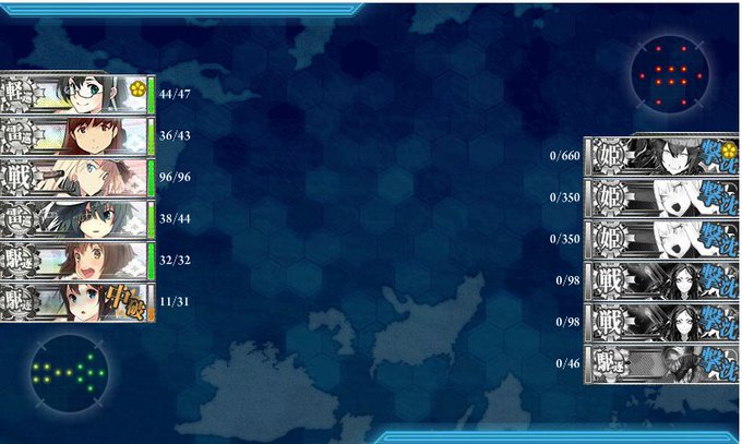 イッターー!!!! E3-乙クリアしました!! ラスダンに10回くらい、しかも道中一度もBOSSを撃破したことなかったので半分諦めてましたが基地航空部隊の編成を変えたらあっさり開幕で空母おばさん黙らせる! S勝利時の邂逅は比叡。。渋い。ラスダン沼にヒトミもゲット #艦これ