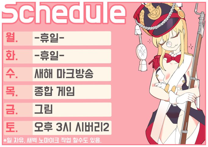 방송 5주차 스케쥴표입니다~ 치지직 https://t.co/hpyavIdPMk… 🖌fanart tag: #RyuByee_art
