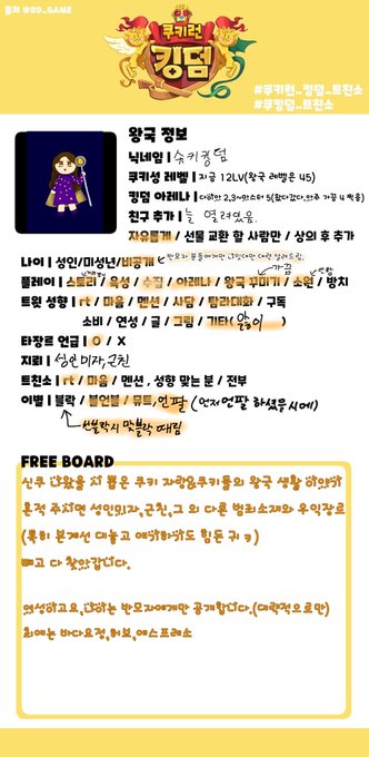 자캐들과 쿠키런이 주인 여성입니다.(가끔씩 이영싫).나이는 반모자들에게만 대략적으로 공개하고요.트친님들 의알,인알 해주시면 감사하겠습니다.근친,성인미자,그 외의 범죄소재들과 우익 장르는 안받아요~!(섹트는 보자마자 블락&뮽)