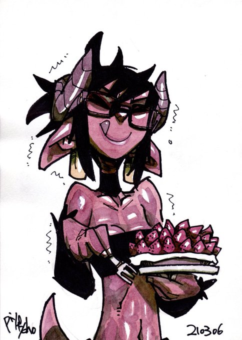 Clawdia had a lots strawberries cakes Hornpot made. #clawdia #hornpot
