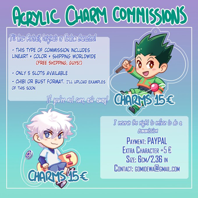 I'm opening digital #commissions for the first time to see how this goes and because me and @ZelsaVK need to get ready for the upcoming #japanweekendmadrid #art #BNHA #fanart #hxh #bakushima #Bakugou #kirishima #charm #icon @JW_Arte @kofi_button