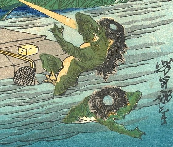 This week #WyrdWednesday is about all things green, so I'm going to tweet about the kappa, a #yokai from #JapaneseFolklore. Kappas are small reptilian creatures about the size of a small child. They live in lakes and rivers waiting to attack unsuspecting passers-by.