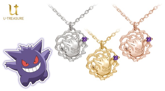 #PokémonGoodies : nouvelle collaboration de U-Treasure et The Pokémon Company au Japon pour des colliers Ectoplasma, en argent, or jaune, or rose et platine. Les prix vont de 17600 ¥ à 99000 ¥ (135 € à 763 €)