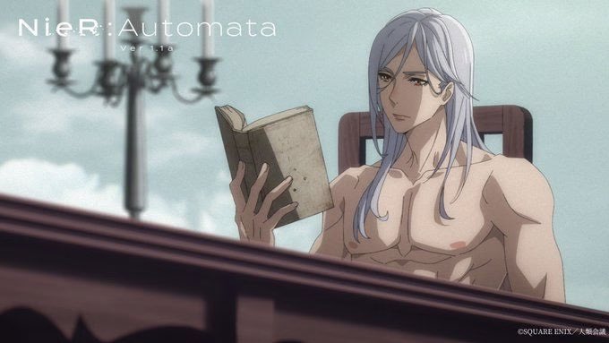 Quant à eux j’ai même pas compris comment ils sont arrivés, ni à quoi ils servent… 😭 ce sont des frères alors pourquoi Adam et Ève ? Et cette histoire de pomme, et de lecture le long de cette table, et à chaque épisode ils ont un nouveau vêtement /accessoire 🤯 #NieRAutomata