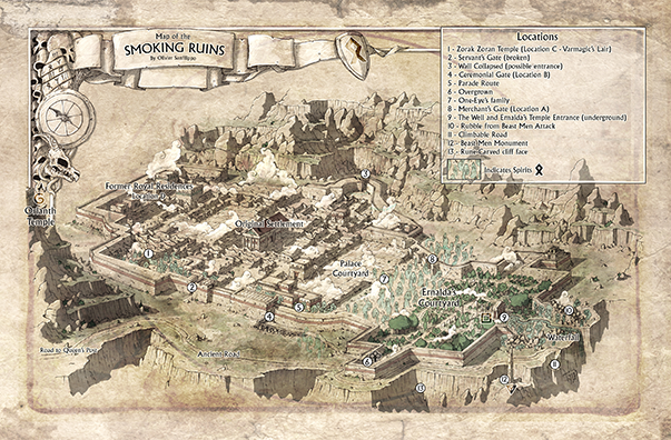 "The Smoking Ruin & Other Stories" contains ready-to-play adventures for RuneQuest, taking adventurers across a region filled with wolf-brothers, dinosaurs, monstrous mercenary companies, living trees, surly river spirits, and worse!
