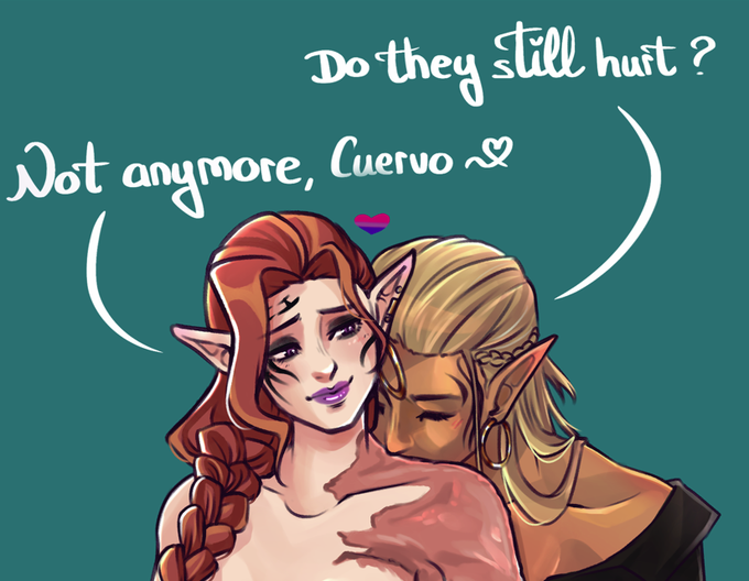 Deidre Surana and Zevran Arainai moment 💜🖤🥺