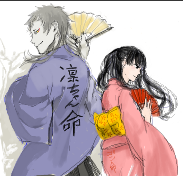 エチャ絵その5!ごんと凛です!左が浦助で右の凛ちゃんはゆかち(@yukachiex)です! #創作