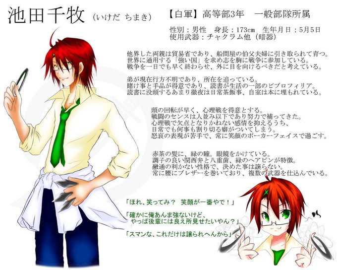 白軍派思想、志を胸に日々邁進!面倒見良く、後輩とにかく可愛いので世話焼きたがる。戦場以外では敵軍でもそれなりに仲良く出来ますが戦場では容赦無し。良かったら絡んでやって下さい✩関係緩募です~‹‹\(´ω` )/››