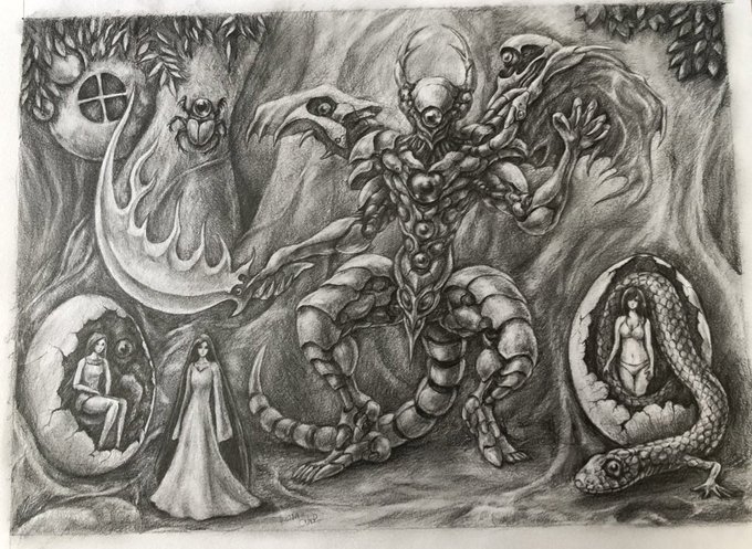 不気味に不穏にかっこよく描いてみました