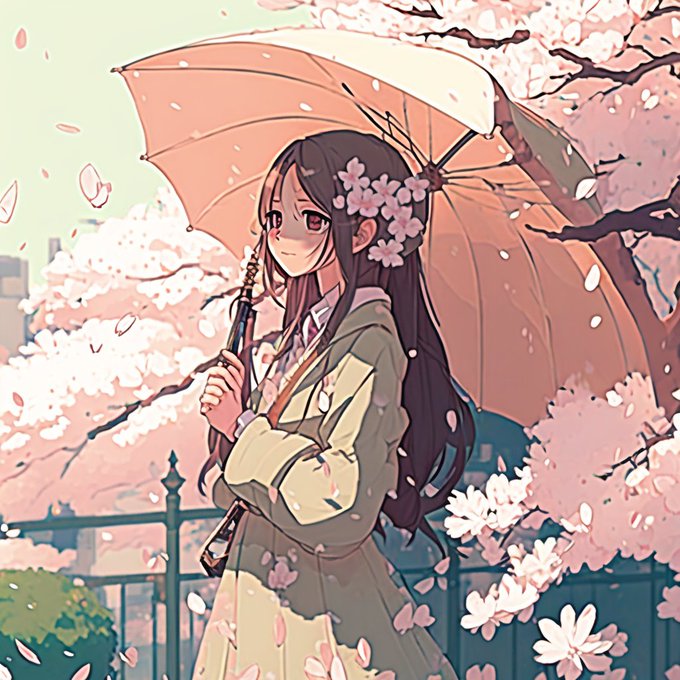 anime illustration of cute girl during a blossom season