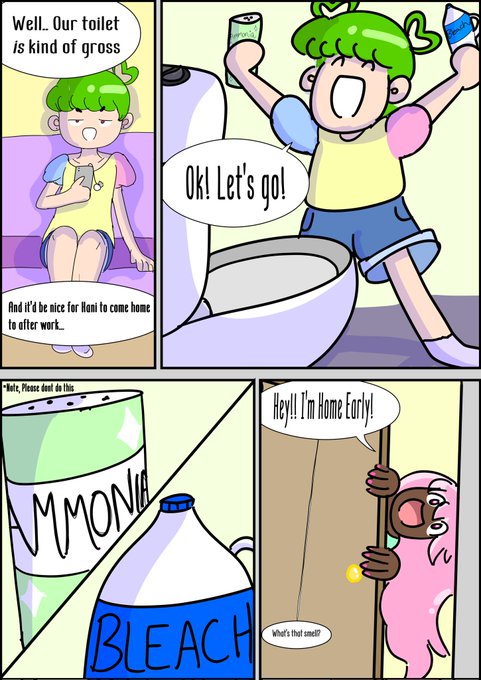 A little narrative comic I did for school! Featuring Hani and Callie 💖💖💖 please do not mix bleach and ammonia unless u want to poison urself 💖💖💖💖 #artmoots #digitalart #webcomic #comic