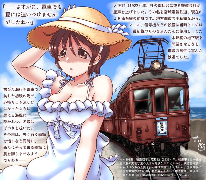 …結局旧宮城電鉄設立日の9月9日に間に合わなかったばかりか、桐沢先生のシリーズを「パクろうとしたけど全然パクりきれてない」感じに終わってしまいました、誠に申し訳御座いません…だってさあ!!いっぺん描いてみたかったんだもん宮城と「みちのく美人」つながりで名取と旧宮電モハ801!!(