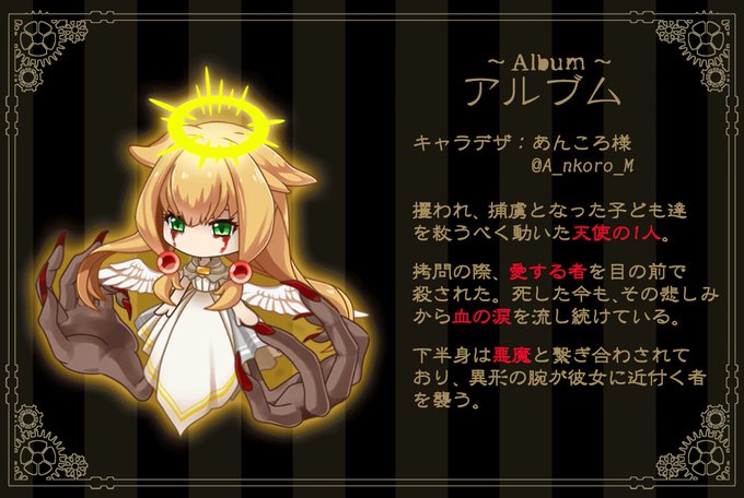 最後に亡骸サーカス団のパレードの団員さんの1人、あんころ様(@A_nkoro_M)のアルブムちゃんとアートルムくんを作成させて頂きました!ぐるっと回って天使から悪魔へ、悪魔から天使へと変わります👼👿