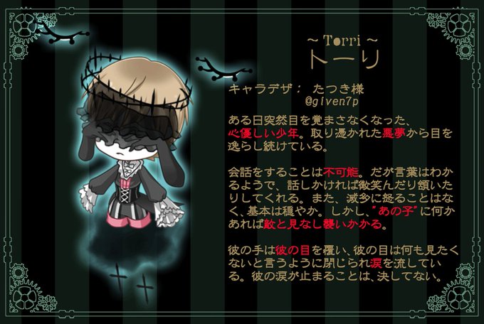 亡骸サーカス団のパレードの団員さんの1人、たつき様(@given7p)のトーリくんを作成させて頂きました!ゆららちゃんの素敵な旦那様です✨💒