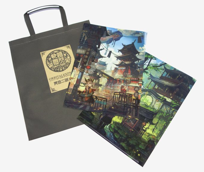 冬コミ新刊イラスト集に付いてくる2種のクリアファイルと不織布バッグです。新刊2種同時購入でこちらのアクリルフィギュアも付いてきます。 https://t.co/8yRvgQmEPV