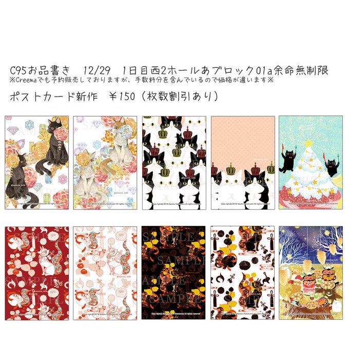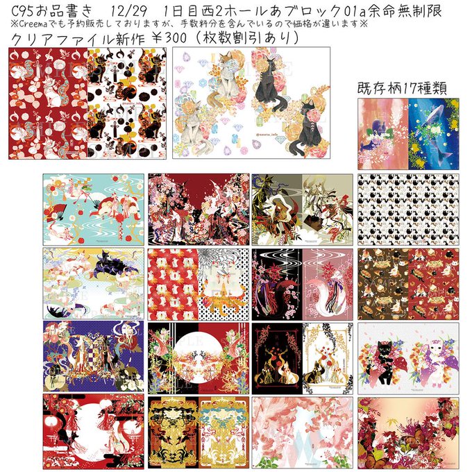 おしながきです!新作は冬コミセット【ユニコーン新刊2種・不織布バッグ・グラス・カレンダー・複製色紙・折本】、もふもふブランケット、タペストリー、直筆色紙です。その他既刊やTシャツも持ち込みます♪*