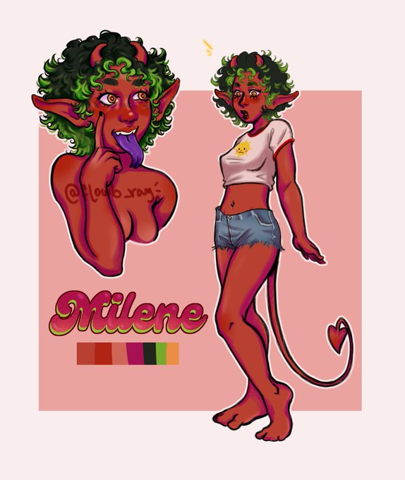 @Quecaell @muffy_draws gostaria de botar mais de um, mas vou colocar a minha xodó, a milene 💘 ela é um diabo-súcubo meio hiperativa e bem idiota mesmo. gosto das orelhonas dela, do cabelinho de mechas neon e o rabinho de coração. todas as cores e estética dela contribuem pra ela ser meio palhaça KKKKK