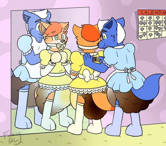 Two very stinky sissies getting ready for the day~! @PampsLink is helping me to get some locks on.
