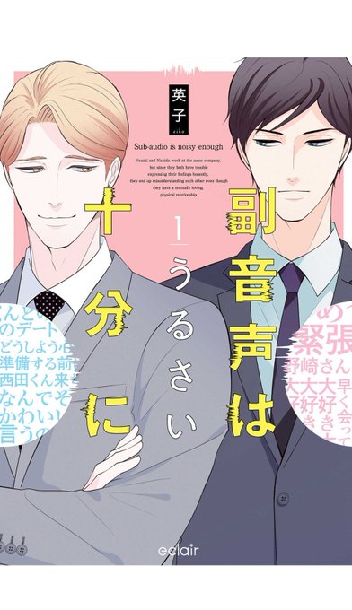 fujossycomicで人気連載中の『副音声はうるさい十分に』がエクレアコミックとして単行本化!野崎と西田は、上司と部下の関係。仕事もできるし見た目も良いのに……この二人、鈍感すぎます!!!