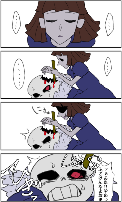 『頭のヒビ穴に異物をつっこまれてヒィヒィしてるホラサンズの絵』