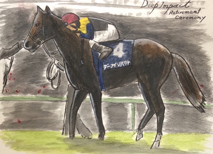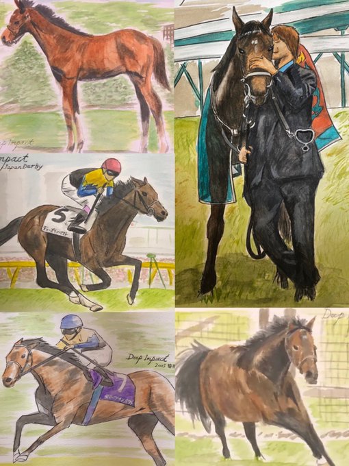 今日7月30日はディープインパクトの命日…種付けが出来ないとかのニュースの後にまさかの早すぎる死…何枚か描いたディープの絵。