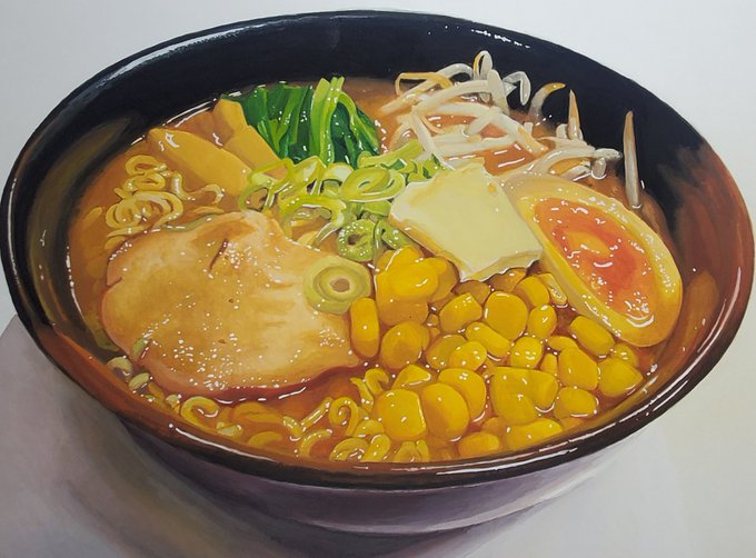 一応絵描きなので、ポスターカラーで描いた「今食べたいもん」上げときます。※1つは色鉛筆画ですけども