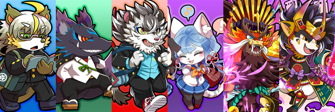 こんばんは。パズあにデザイン班です。近日登場のあにまる武将をご紹介!左から「2年・徳川慶喜」「2年・松永久秀」「3年・足利直義」「1年・雪女」「天下人・豊臣秀吉」「大一大万大吉・石田三成」です。お楽しみに! #パズあに
