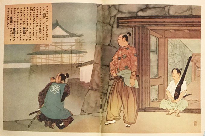 古書市で買った昭和13年版講談社の絵本「豊臣秀吉」(復刻)に当時珍しい洋装の信長が。鉄砲の稽古の途中で藤吉郎の清洲城修築を巡検する信長が南蛮鎧下着を着ています。歴史画家尾形月山らしい凝った故実考証。一方安土城はめっちゃ中国趣味です。 https://t.co/nDlGkGjAoM
