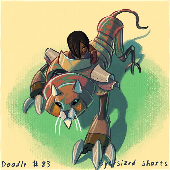 Bytesized Doodles 83 -Steampunk Convention- #Steampunk Sami the Tiger Mech! #DailyDoodle #Art #illustration #Tiger