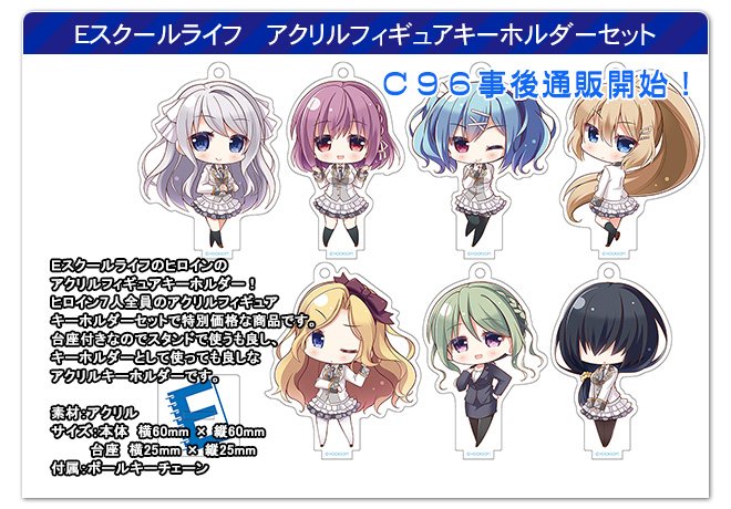 HOOKSOFTからは「Eスクールライフ」のアクリルフィギュアキーホルダーセットやサントラCD、