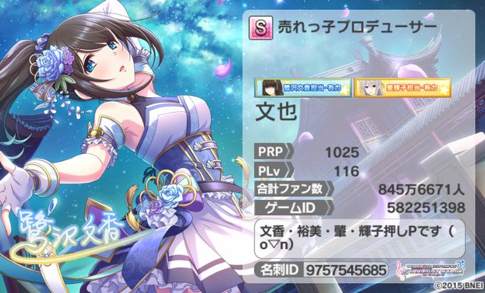 プロフィール更新です。最近ミリシタも始めました。