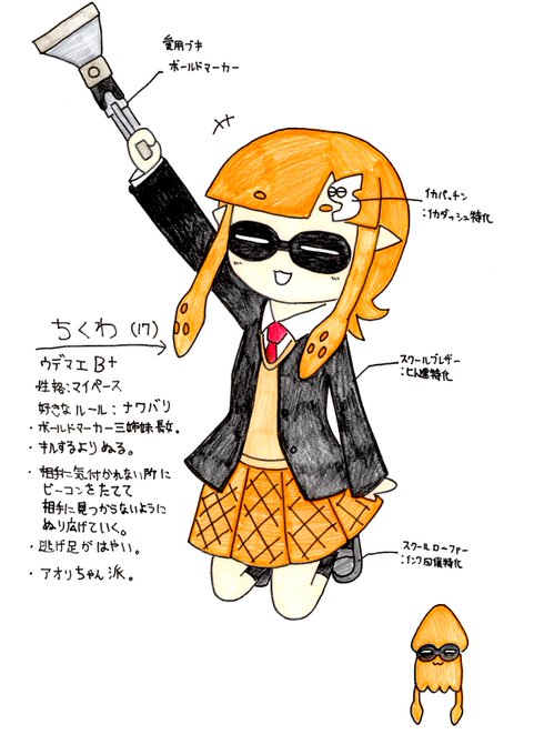 今回タグお繋がりしていただいた方々ありがとうございます。よろしくお願いします。イカ以外にもおりきゃら描いたり、いろいろ変なつぶやきする奴ですが仲良くしていただけると幸いです。私の他にもマイイカの「ボールドマーカー三姉妹」をどうぞお願いします(`・ω・´)ゞ