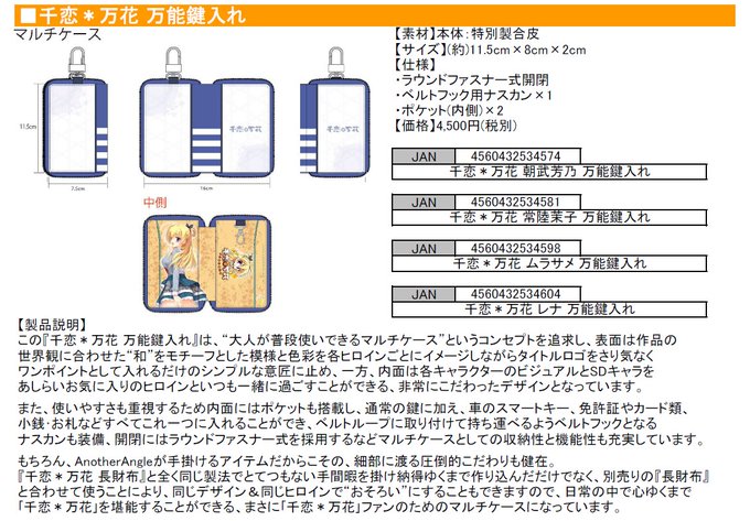 【お知らせ】Amazon様にて『千恋*万花 長財布』と『千恋*万花 万能鍵入れ』の在庫が切れておりますが、AnotherAngle公式通販では在庫僅少ながらまだご予約を受け付けていますので、ご購入を迷われている方はお早めにご注文いただきたいと思います。 https://t.co/2LwmC15x0W
