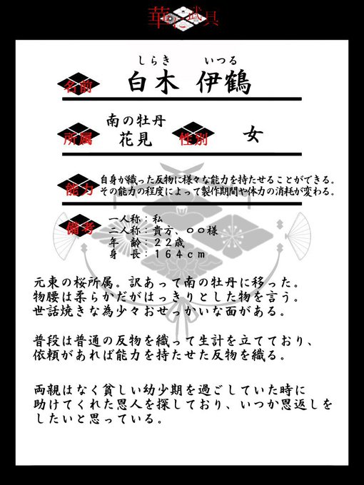 @Hananibugu #華に武具 #華に武具_CS #華に武具_牡丹 #華に武具_武具 #華に武具_身請け募集 【華に武具】参加します。同心紛いの少女武具です。記載忘れましたが見受けはNL限定とさせていただきます。よろしくお願いします!