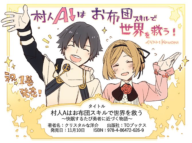 キャラデザやイラスト等担当させていただいた、クリスタルな洋介先生(@kurisutaruna)著 #村人Aはお布団スキルで世界を救う